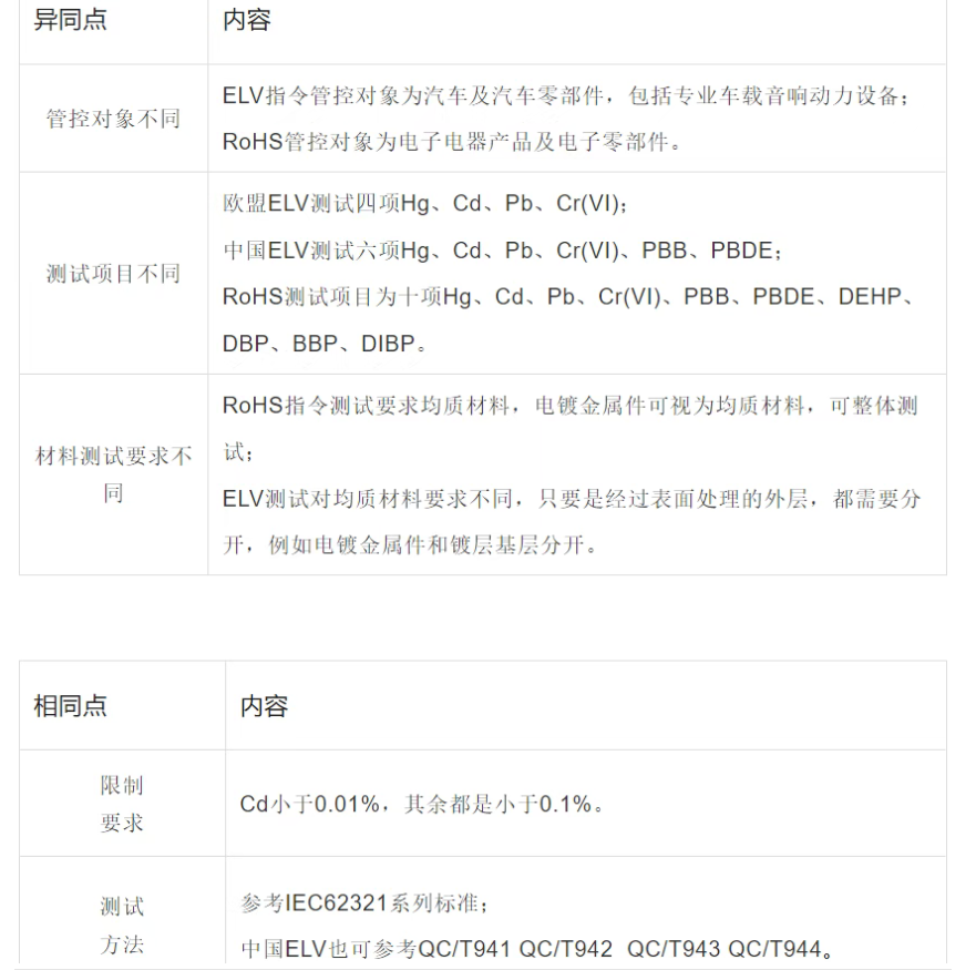 RoHS与ELV的比较