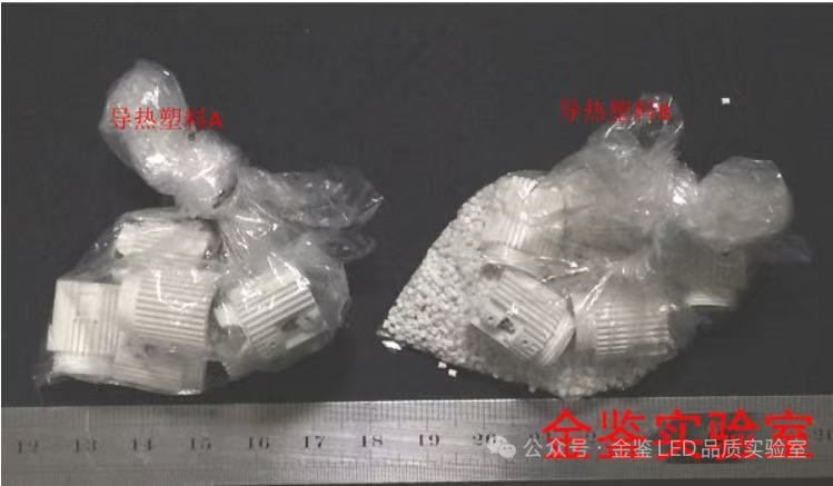 某客户送测两款不同批次的导热塑料A和B,其中一款出现开裂现象,特委托金鉴实验室鉴定两款导热塑料材质是否一致。