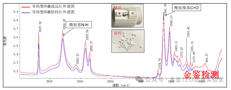 FTIR测试结果显示导热塑料B为聚酰胺类物质,即PA。
