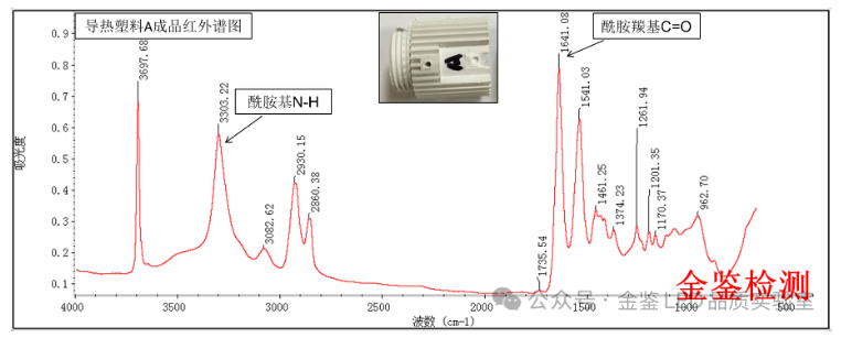 FTIR测试结果显示导热塑料A为聚酰胺类物质,即PA。