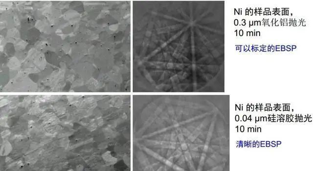 为了进行有效的EBSD分析,样品制备需要遵循一定的原则,包括无残余应力、表面平整(振动抛光)、清洁、适合的形状及尺寸、以及良好的导电性。样品制备过程可能包括离子刻蚀、抛光等步骤,以确保样品表面状态适合EBSD分析。
