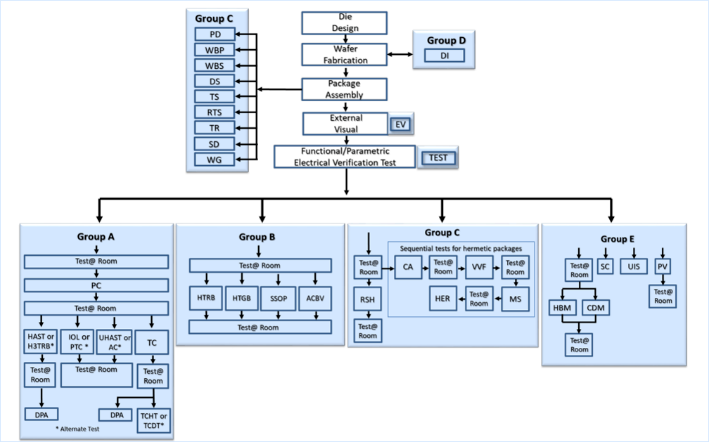 AEC-Q101标准将测试项目分为五个主要组别,每个组别包含特定的测试项目: