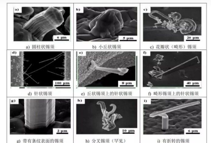 锡须的生长可以分为五个过程:Cu/Sn结合界面的原子相互扩散、晶界效应、压应力的产生、IMC层的持续生长和Cu6Sn5层反应减缓。锡须的生长可分为孕育期、快速生长期和低速生长至停止期三个阶段。